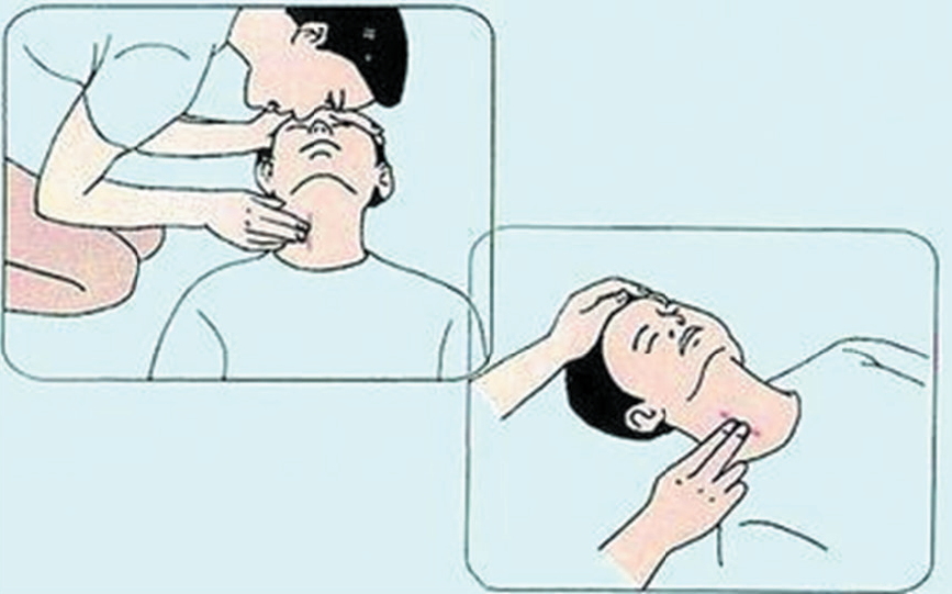 ? ? ? ?清理口腔防堵塞,鼻孔朝天頭后仰;