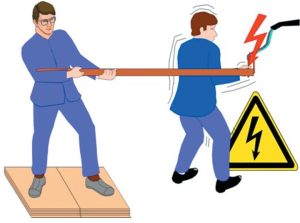 若身邊沒有工具時,救援者最好戴上橡皮手套,穿橡膠鞋等,拉開跌開式熔斷器或高壓保險開關,千萬不要用手去拉觸電者,以防觸電。