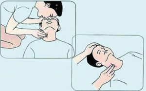 開放氣道應先去除氣道內異物。如無頸部創傷,清除口腔中的異物和嘔吐物時,可一手按壓開下頜,另一手用食指將固體異物鉤出,或用指套或手指纏紗布清除口腔中的液體分泌物。